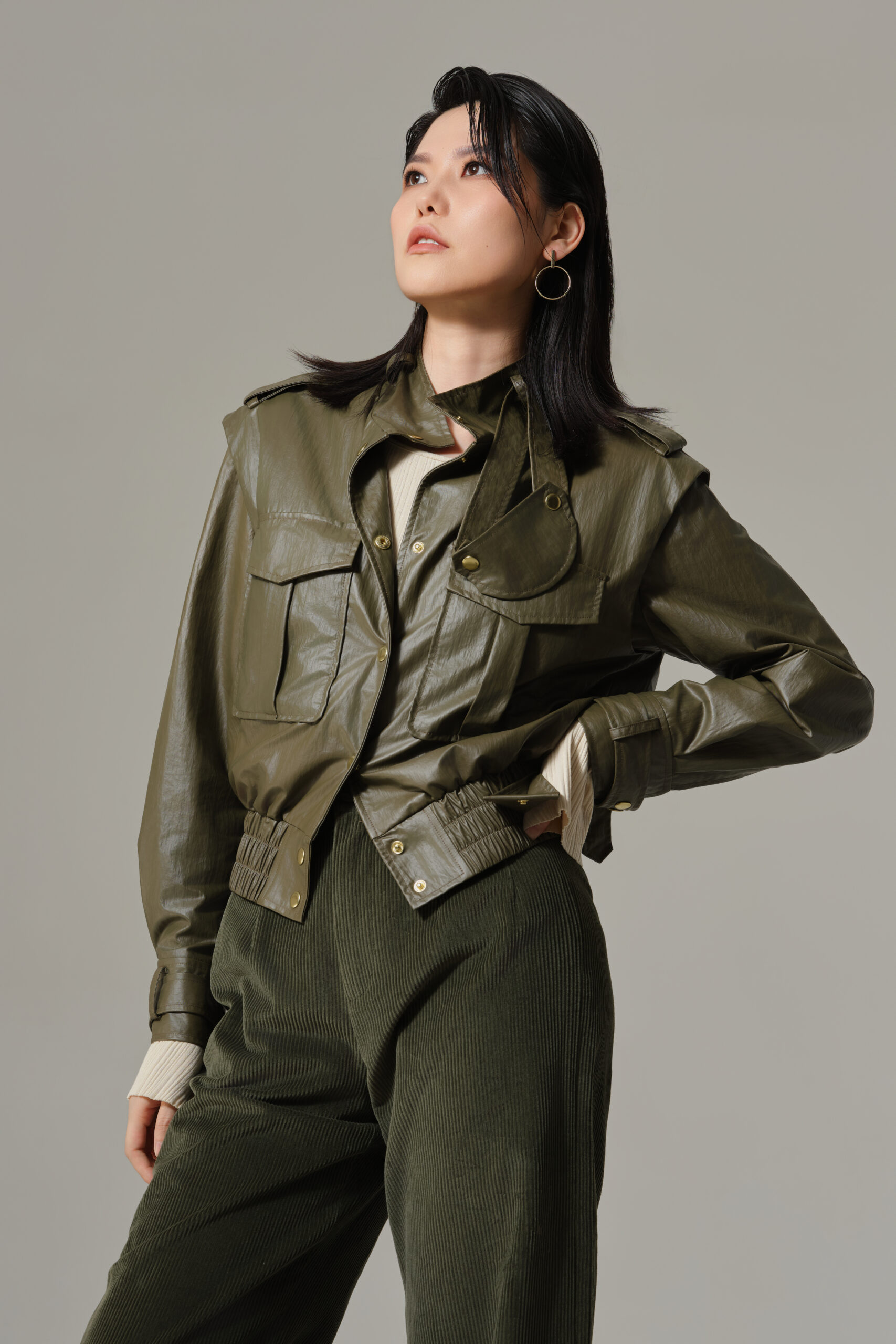 可调节颈圈与袖口设计:饰以品牌復古按扣,轻松切换休闲与正式风格,细节处尽显奢华。