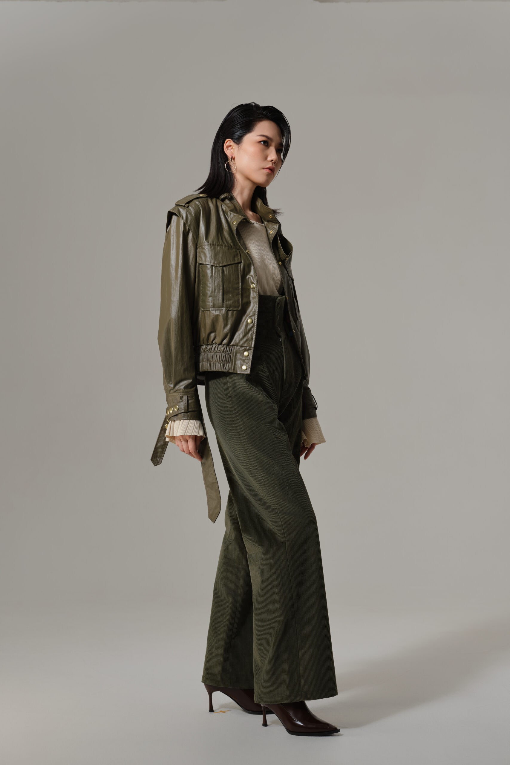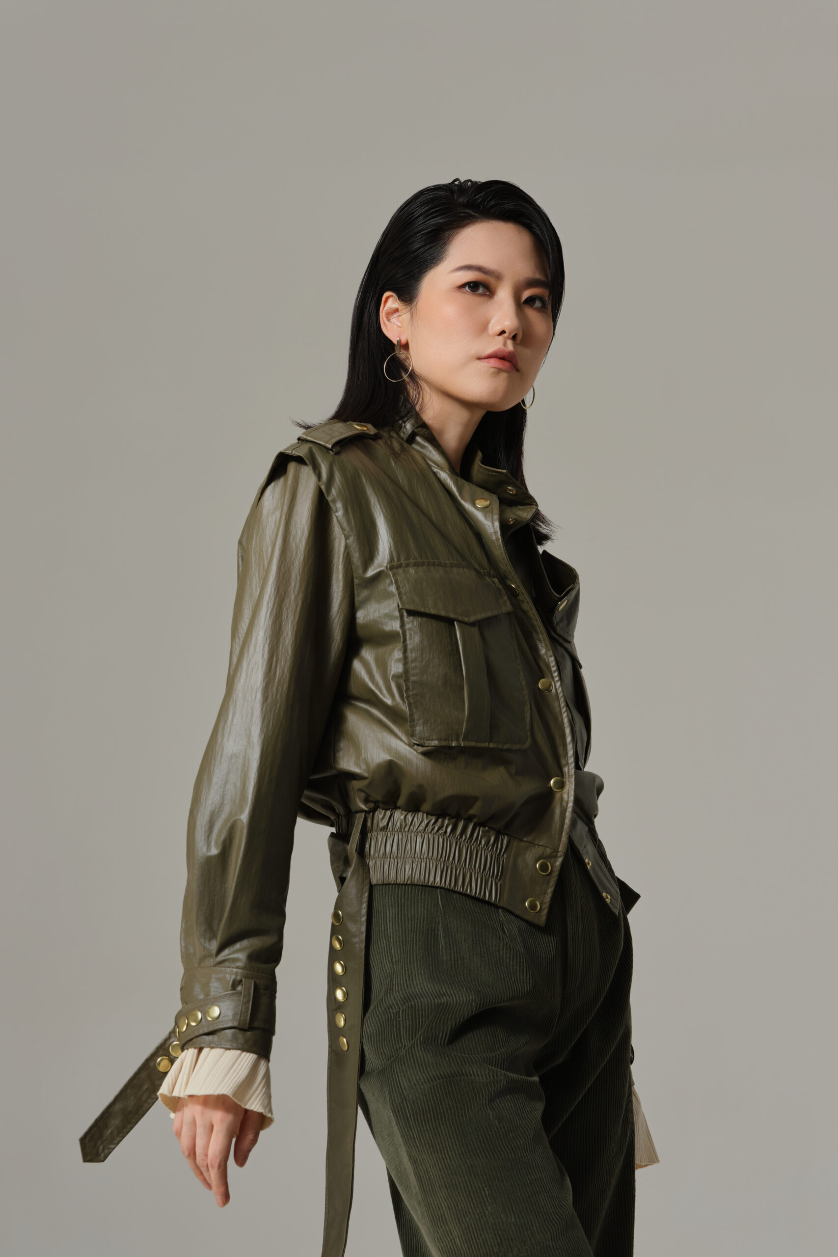 金色按扣门襟:开合顺滑,点缀简约设计,提升整体高级感。
