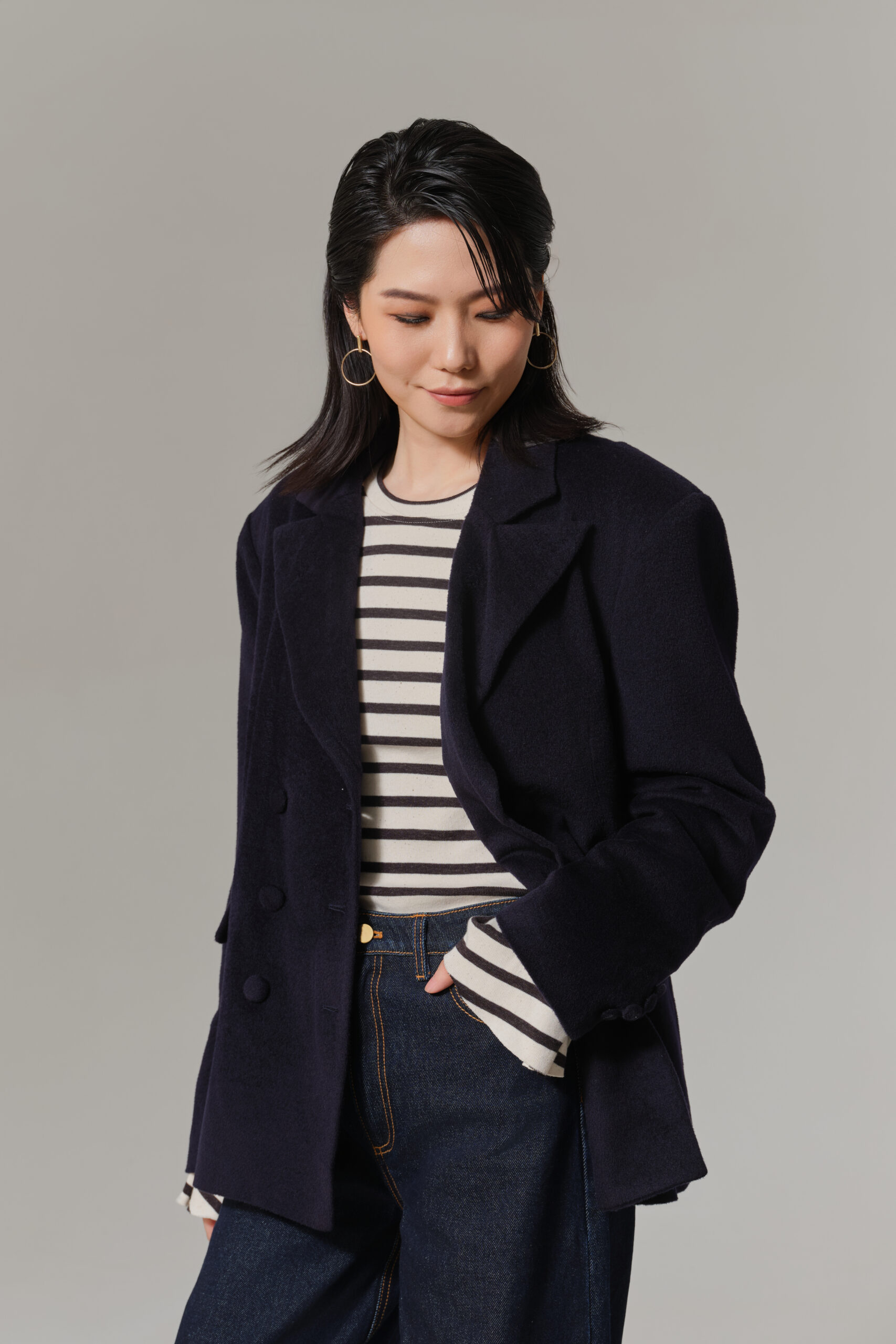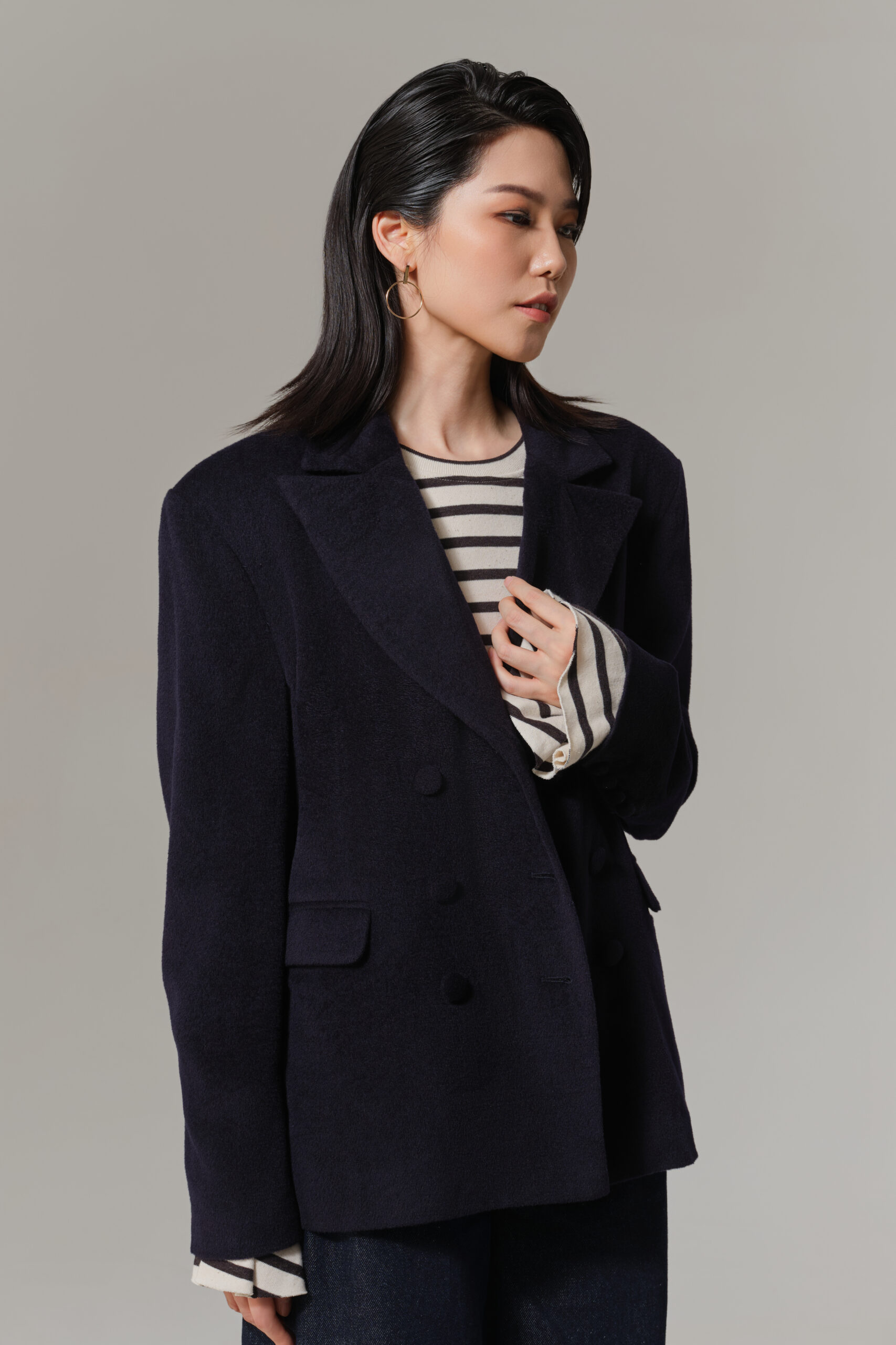 • 创新特宽驳领设计, 彰显独特松弛感